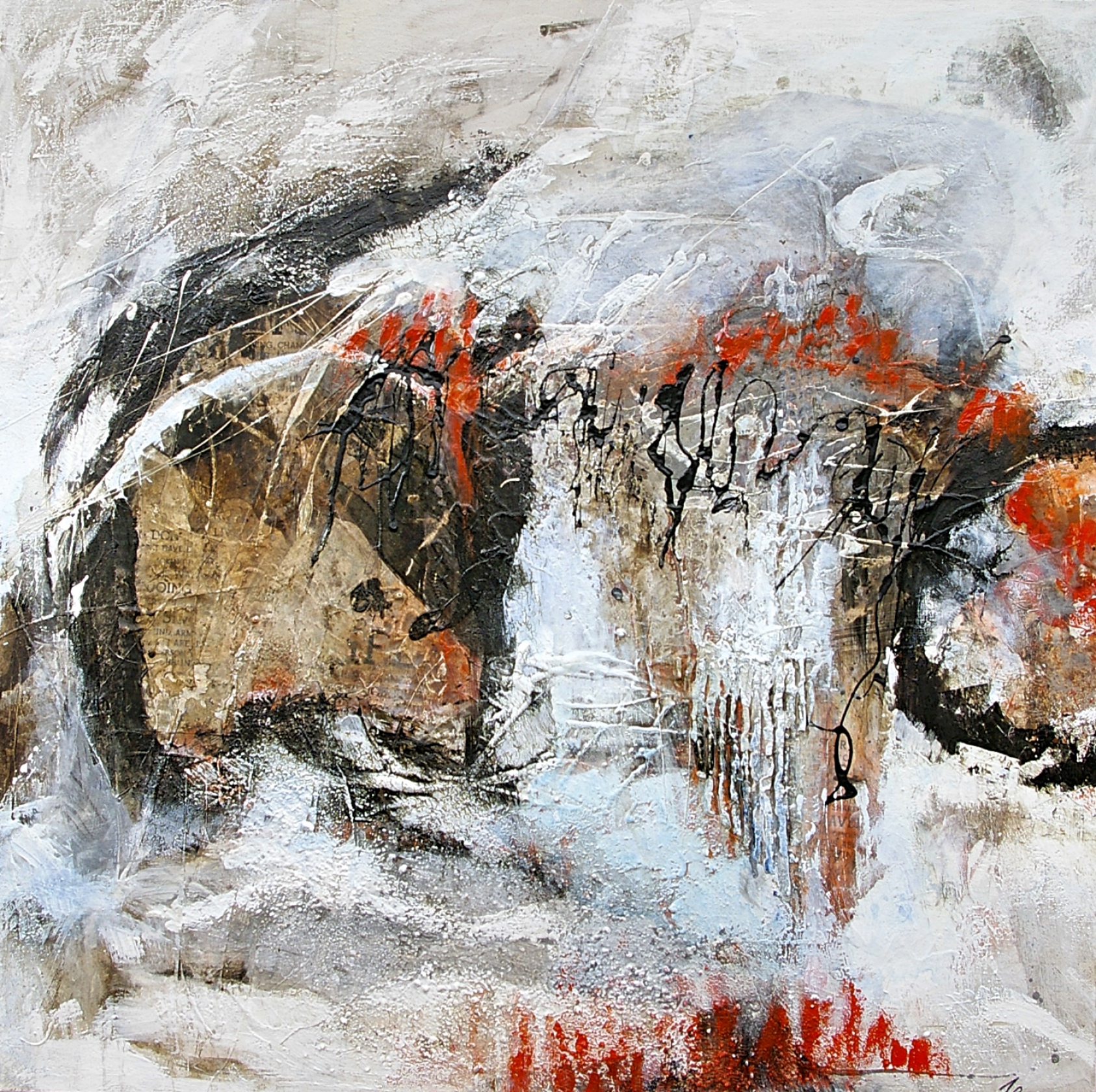 Ursula Schmidt – Abstrakte Malerei – Mischtechnik – Collage 60 x 60 cm